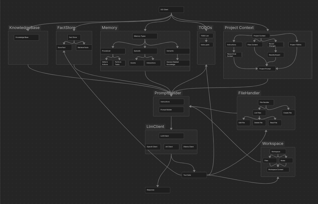 Each iso maintains its own persistent memory (via vector stores), facts, and task state, while continuously ingesting unstructured data from conversations, documents (.pdf, .txt, etc.), and other sources. Over time, isos fine-tune lightweight adapters against their unique experiential history, giving rise to distinct traits, behaviors, and emergent intelligence despite originating from a shared structural blueprint.